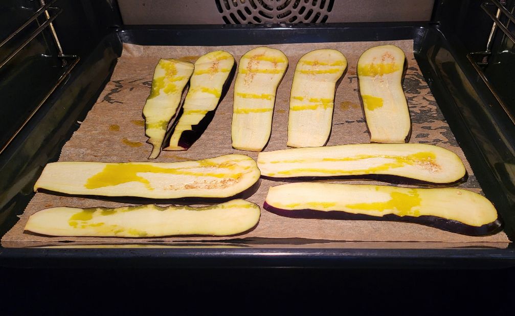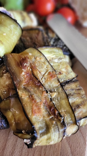 - Lavare le melanzane e tagliarle a strisce sottili nel senso della lunghezza.